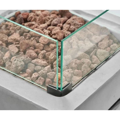 – Flammen- Windschutz aus gehärtetem Schutzglas, der dem Feuertisch ein schönes Flammenspiel und zusätzlich eine elegante Note verleiht