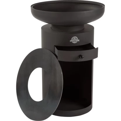 Für ein leckeres Grillvergnügen sorgt dieser Jamestown Plancha-Grill aus der Jamestown Serie. Dabei begeistert er durch eine Kombination aus Plancha und Feuerschale mit Kochplatte. Für die Herstellung kommt stabiler und langlebiger Karbon-Stahl zum Einsatz. Als praktisches Extra verfügt der Plancha-Grill eine Ascheschublade sowie ein Fach für die Holzaufbewahrung. Seine Gesamtmaße betragen 70 cm x 58 cm x 58 cm (H x B x T).